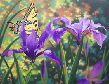 "Iris and Swallowtails" acrylic on panel (SOLD)