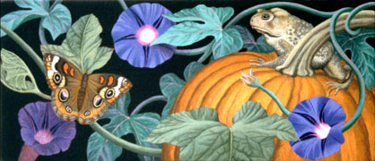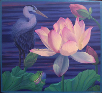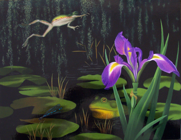 "Frog & Purple Iris" acrylic on panel, 14" x 11" (SOLD)