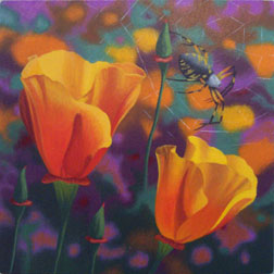 "Poppies & Spider" acrylic on panel, 6" x 6" |