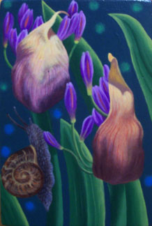 "Agapanthus & Snail" acrylic on panel, 3.5" x 5.5" |