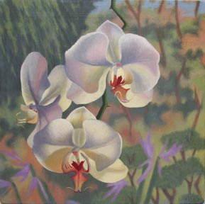 "White Orchids" acrylic on panel, 7.25" x 7.25" |