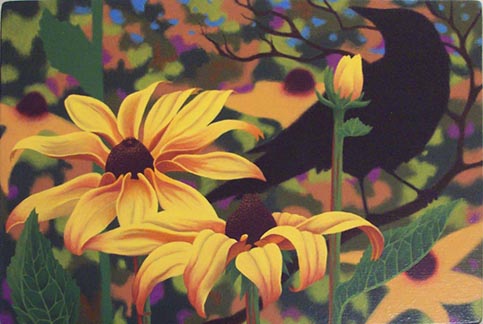 Blackbird & Black-eyed Susans" 7.25"h x 10.5"w