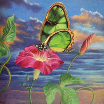 "Butterfly & Morning Glory" acrylic on panel, 9 x 9" (SOLD))