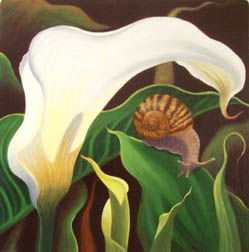 "Calla & Snail" acrylic on panel 6" square (SOLD) |