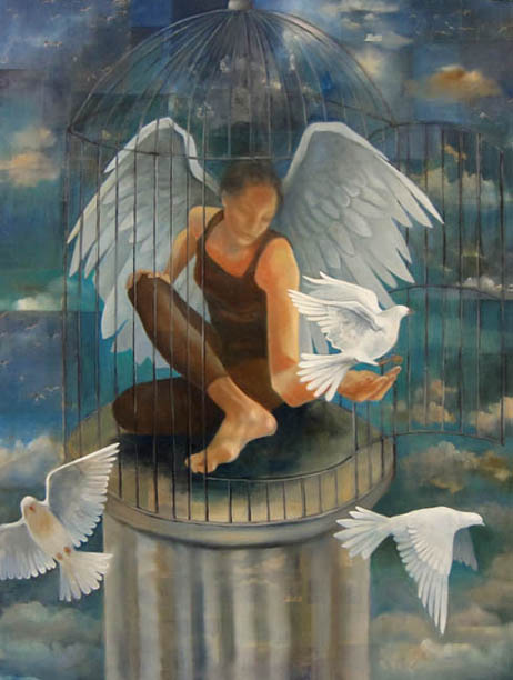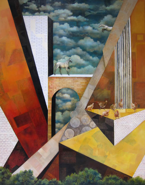 "Breaking and Entering" (SOLD) mixed media, 36" x 24" |