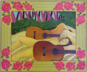"Two Guitars" oil on canvas, 46 x 56"