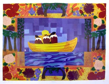 "Congas" collage with gouache on handmade paper, 23 x 31"