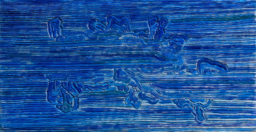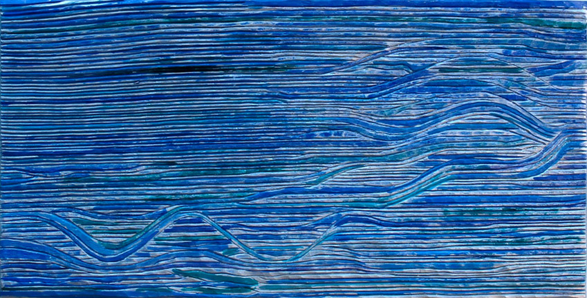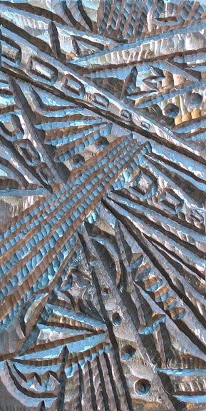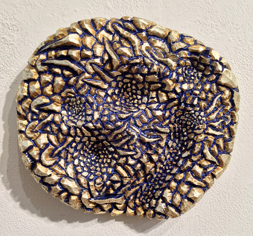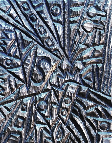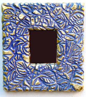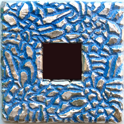 "Blue Mirror" oil & silver leaf on carved wood |