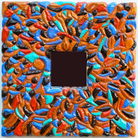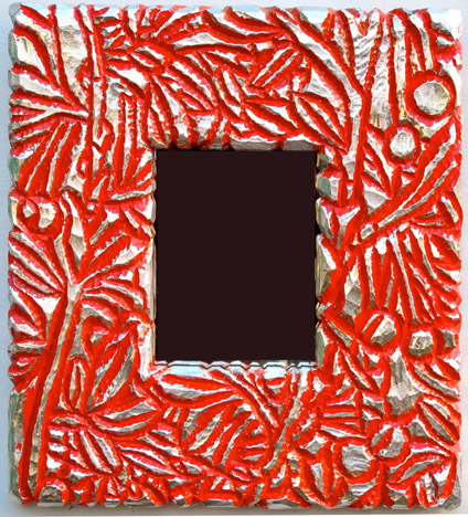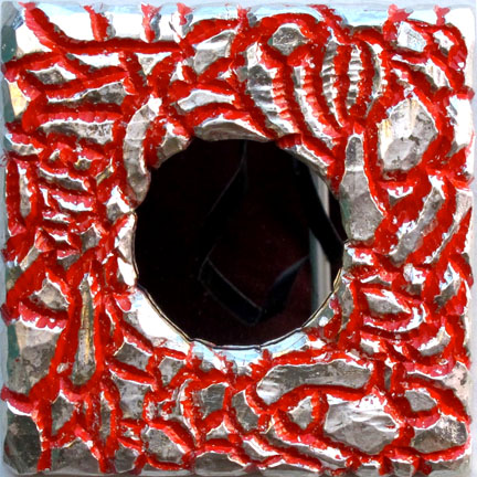 "Red Mirror" oil & silver leaf on carved wood |
