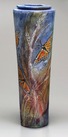 Monarch & Grasses Cylinder batik raku / ceramic (SOLD) |
