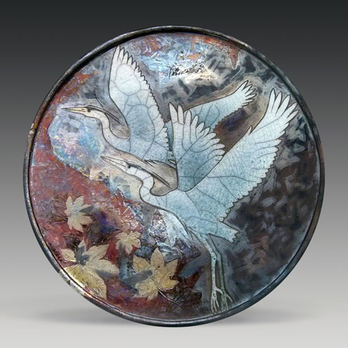 Herons & River Cameo raku-fired ceramic (SOLD) |