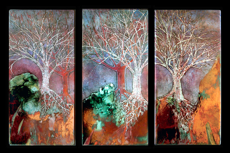 Moon & Mountains Wall Tile batik raku / ceramic (SOLD) |