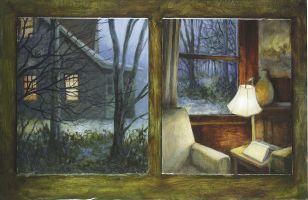 "Nights at Huckleberry Farm" oil on wood, 24" x 18" |