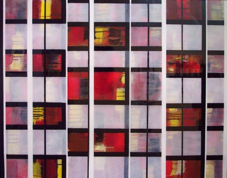 "City Windows / Red" 24" x 48" acrylic & resin on panel |