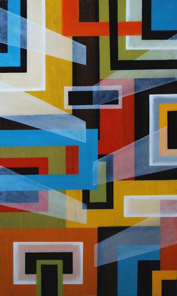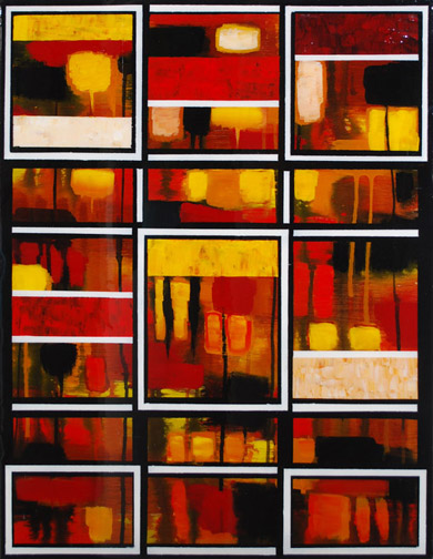 "City Windows - Red" acrylic & resin on panel, 28" x 22" |