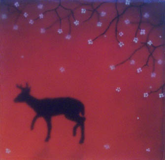"Dogwood" 5 x 5" mixed media, resin on wood |