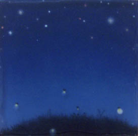 "Fireflies" 3 x 3" mixed media, resin on wood (SOLD) |
