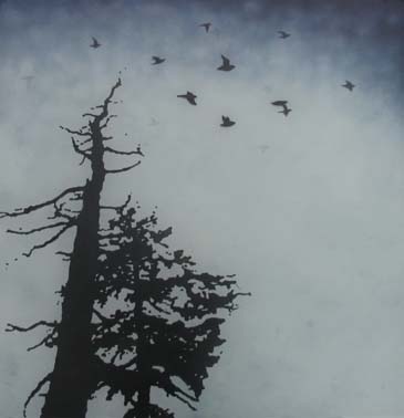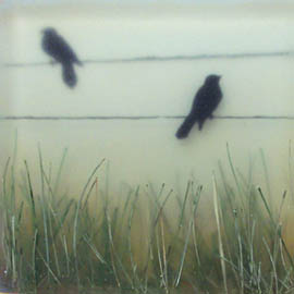 "Red Flock" 3 x 3" mixed media, resin on wood |