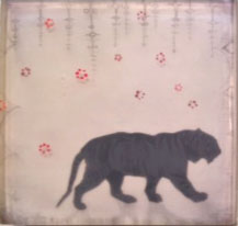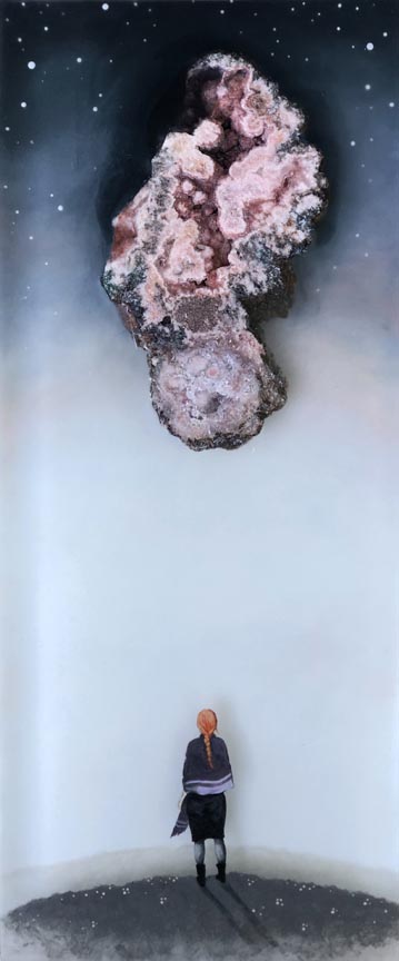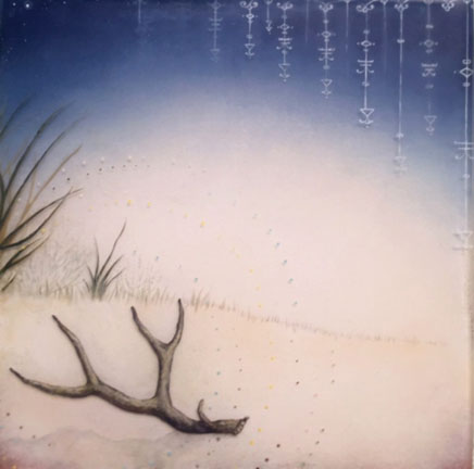 acrylic, ink, pencil & resin on wood, 7" x 7"