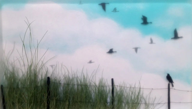 acrylic, ink, resin & grass on wood, 5.5" x 8"