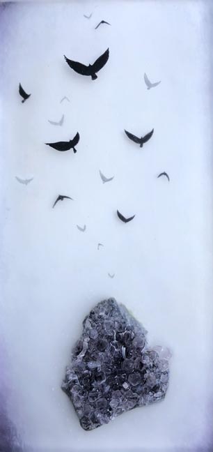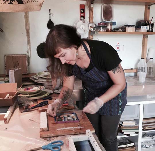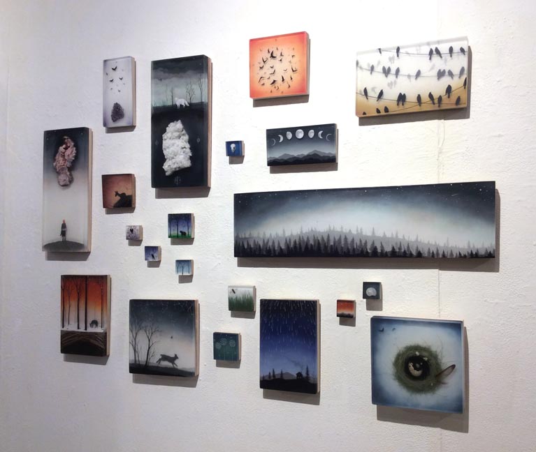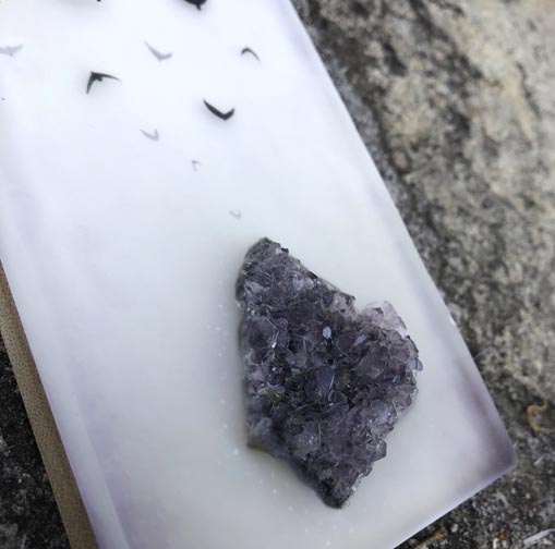 I create tiny, intricate worlds in resin. I blend small painted scenes and real, ethically sourced ephemera such as grass, lichen, feathers, and bones into layered resin. Each piece is hand painted with toothpicks and brushes, embedded in epoxy, then polished into delicate, dreamlike 3-D landscapes populated by woodland creatures and magical symbols. I've been crafting with resin for over 20 years and create art full time from a tiny hut in my backyard in Asheville, North Carolina. I grew up on a farm in western N.C. and have always been a collector and scavenger. I've always loved finding unusual natural objects and specimens and I love incorporating this passion into my creations! I also really like and am often inspired by: Ornithology, dioramas, road trips, astrology, botany, reliquaries, the moon, maps, iconography, miniatures, weather, ancient history, relics, owl pellets, geology, dreams, and fires.... I moved back to Asheville, NC with my husband Eli and our now 10 year old son, Milo Gray after an 8 year hiatus in the Pacific Northwest. |