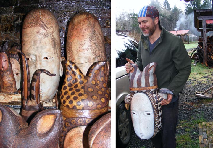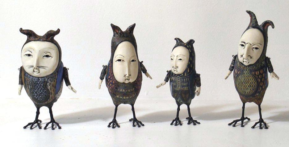 The Gumaelius’ live an imaginative life, raising their four children in a coastal region of Washington State where they have built their home, studios, barns and gardens. They have a fluid working relationship, trading roles constantly in their artwork as well as their home life. In this environment Robin and John record their stories onto the beautiful and unique sculptural works they create, breathing life and conversation into these clay and metal sculptures. |