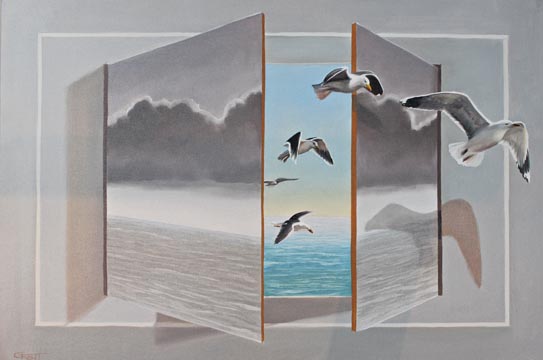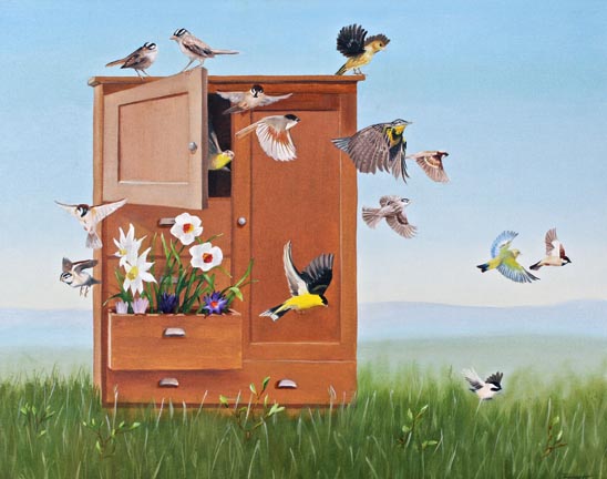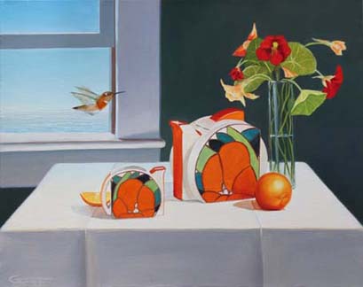 "Rufus Hummingbird with Clarice Cliff Pottery" 16 x 20" (SOLD) |
