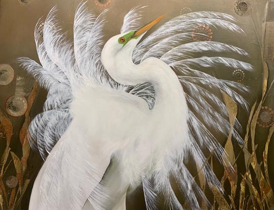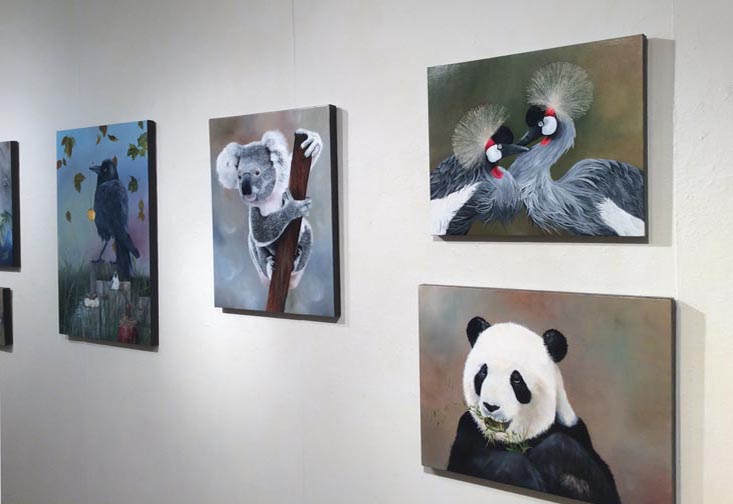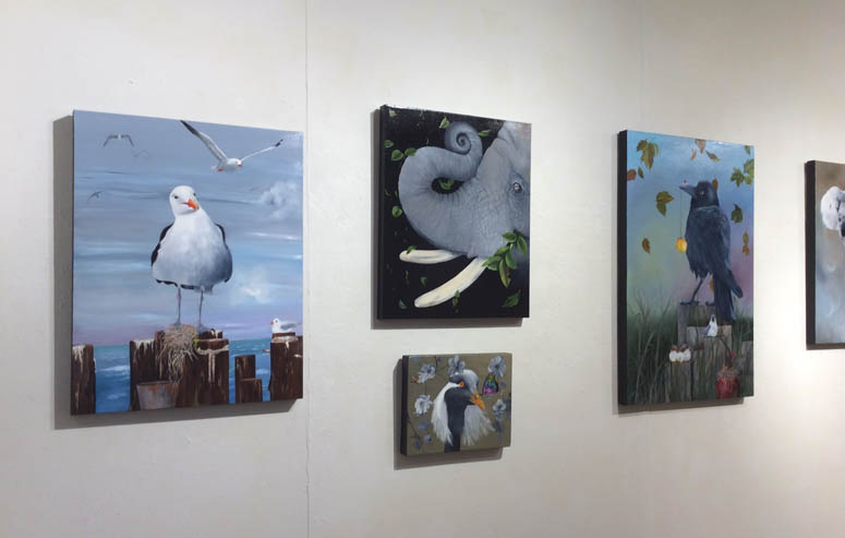 Mary Parkes is an Oregon artist who sees joy and happiness in what she chooses to paint. Her delightful subjects bring to life an emotional connection to the act of painting. Parkes works on smooth sanded canvases to achieve a level of precise detailing. Her incredible renderings of exquisite creatures capture both an external beauty and sense of spirit from within. Elephants, koalas, crows and exotic birds take on personalities that hint at human emotion. Her paintings lean on the cusp of surreal as animals are often depicted in fantasy situations or imagined painterly settings. Parkes’ overall passion for painting can be seen in the delicate and compassionate treatment of subjects. |