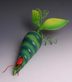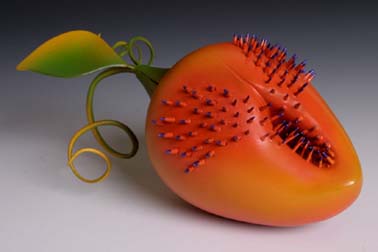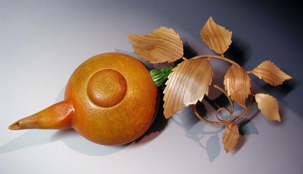 "Forbidden Fruit" carved and painted wood, 5"w x 12"d x 6"h