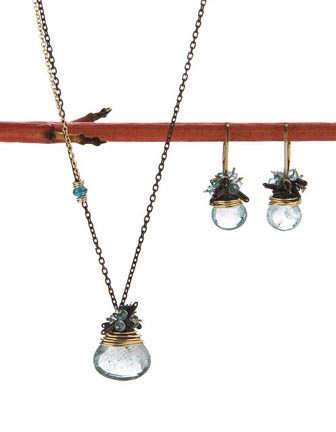 Moss Aquamarine Necklace& Fringe Earrings |