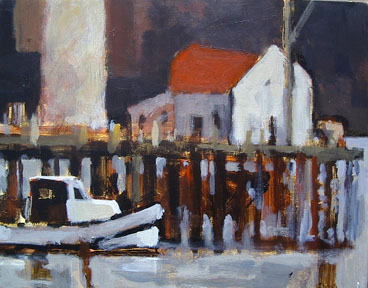 "Dock with Boat" acrylic on panel, 11" x 14" (SOLD) |