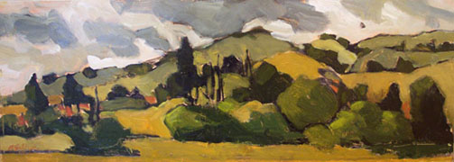 "Sheridan Hills" oil on panel, 6.5" x 18" (SOLD)