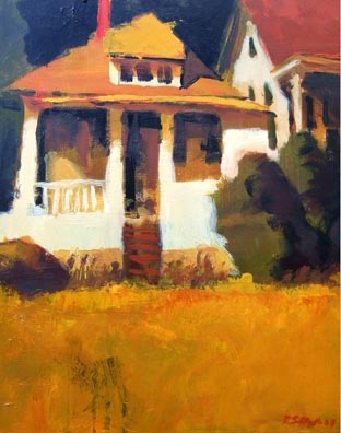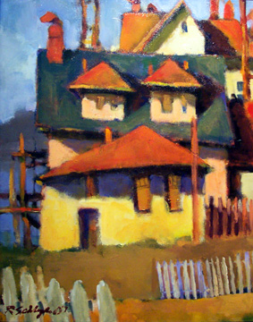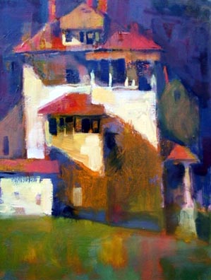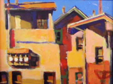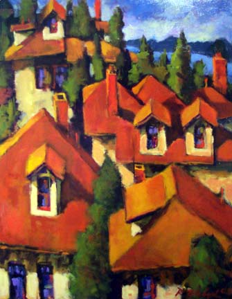 "Rooftops with Chimney" acrylic, 36" x 48" |