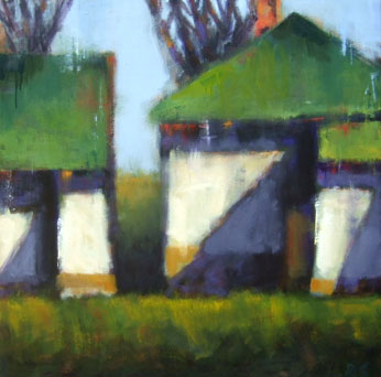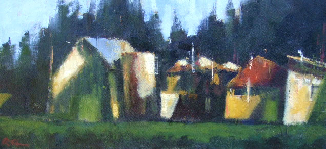 "Shed with Red Roof" oil, 12" x 11.5" |