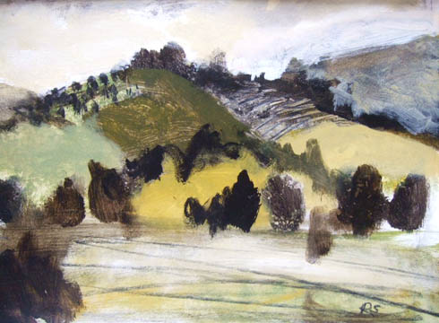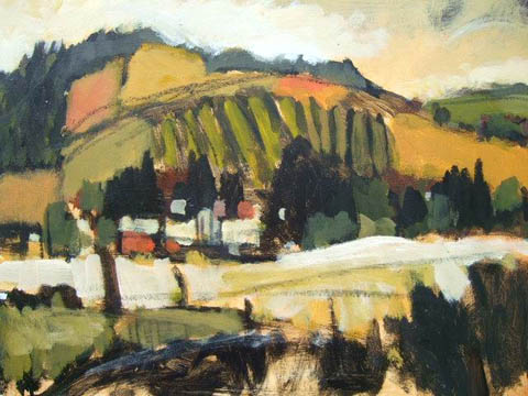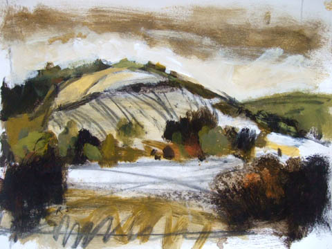"Iowa Hill 3" acrylic, 8" x 13" |