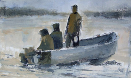 "Three in a Boat" monotype (handpainted) 7" x 11" (SOLD)