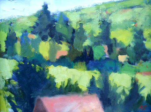 "Red Roof" (Pomeroy), oil, 48" x 36"