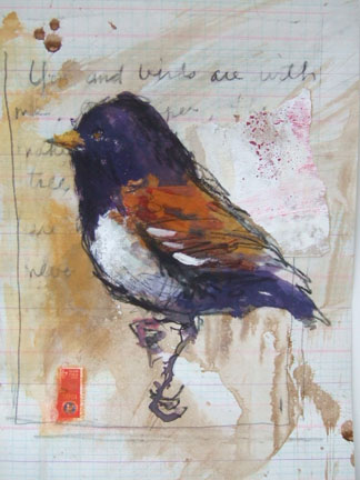 "Bird with Blue" (SOLD) oil, 14" x 11" |