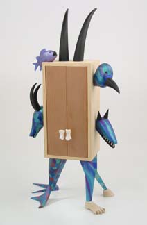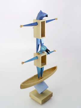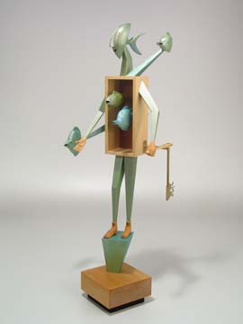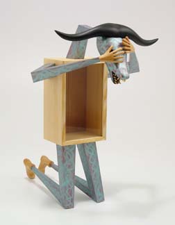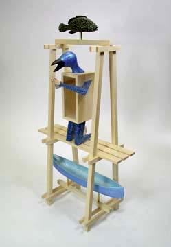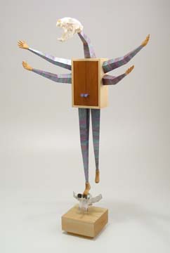 "Look Pa, No Hands" (SOLD) wood & glass, 26"h x 15"w x 5"d |