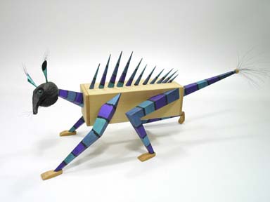 wood, horsehair, beads, copper, 10"h x 2.5"w x 9"d