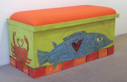 "Soulfish Gator Box Bench" painted wood, metal & fabric (SOLD)
