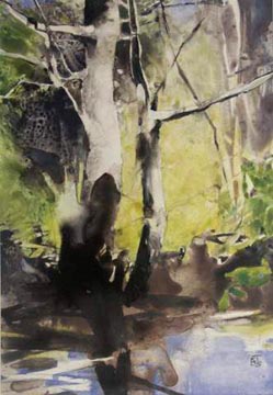 "Oaks Bottom Study" watercolor, 21" x 17" |