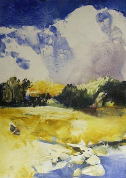 "Raincloud at Dusk" watermedia, 12" x 9" |