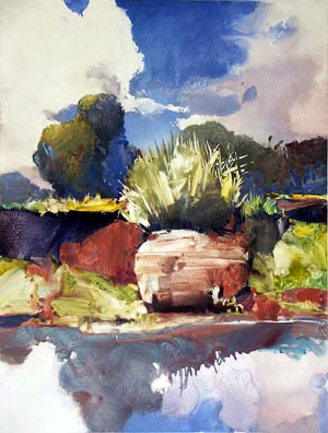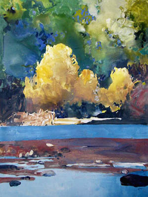 "Riverbank" watermedia on yupo, 26" x 20" |