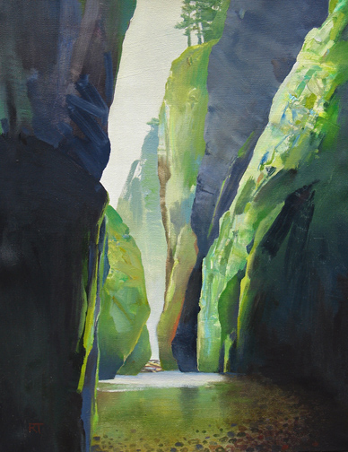 "Oneanta Gorge" (SOLD) oil on canvas, mounted on panel, 20 x 16" |