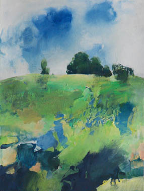 "Summer Hill and Sky" watermedia, 12 x 9" |