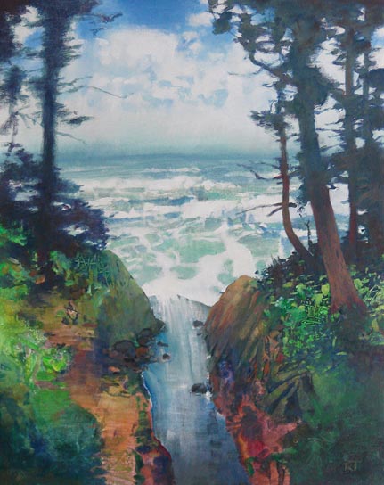 "Above the Falls, Above the Shore" (SOLD) oil & acrylic on panel, 20 x 16" |