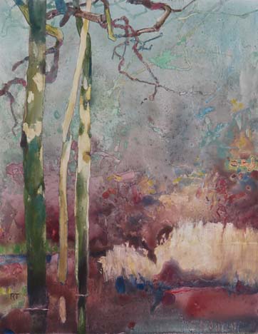 "Late Summer Grove" watercolor on Yupo, 14 x 11" unframed |