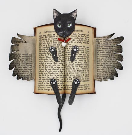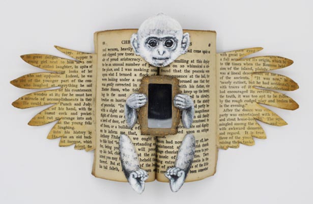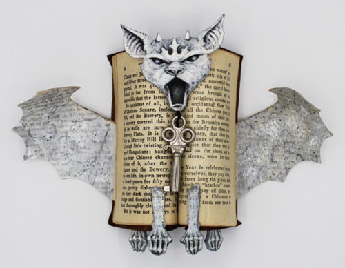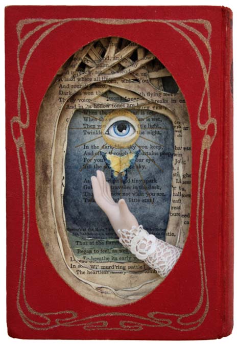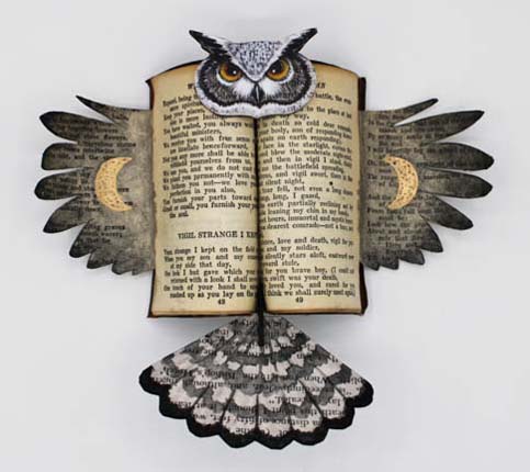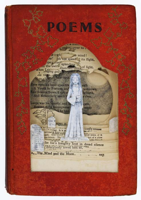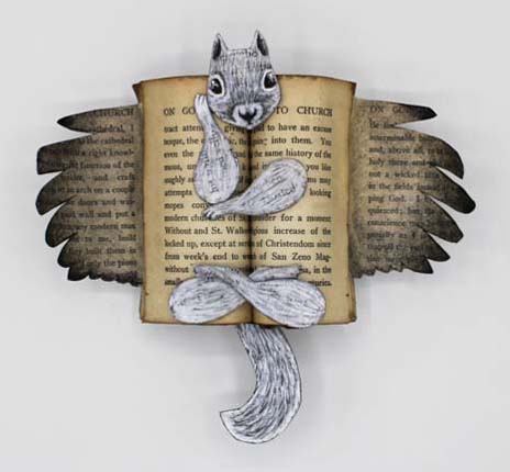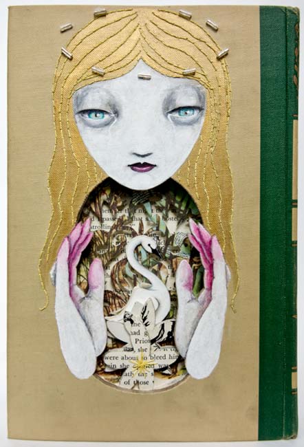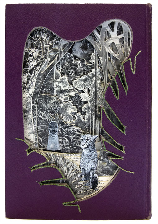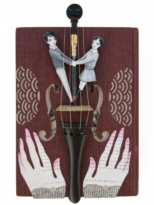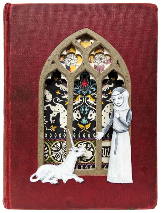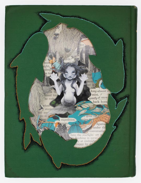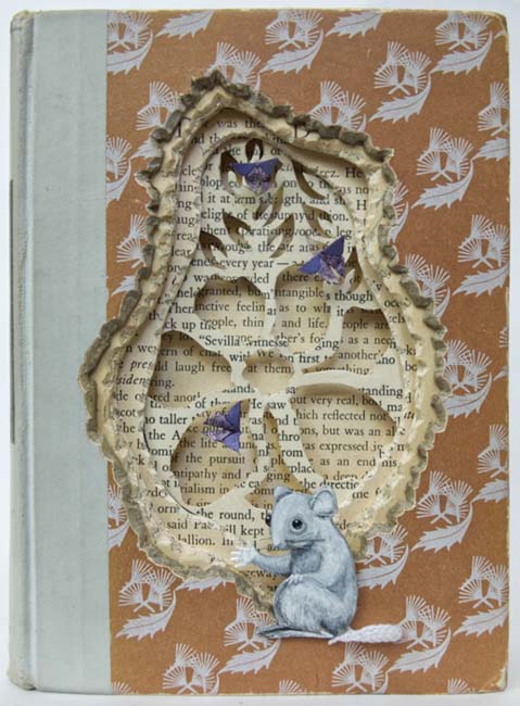Valerie Savarie uses vintage books as the centerpiece of her creations, reinventing them into unique pieces through cutting, carving, stitching and character illustrations that are part of a larger visual storytelling. Valerie’s multi-dimensional book collages leave the majority of the book intact - every page is kept as bound to retain the intrinsic book characteristics. Her innovative artworks form an inseparable bond between words and visual arts. |