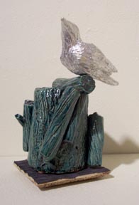 "Head Roost" 26" x 12" x 12" ceramic, silverleaf |